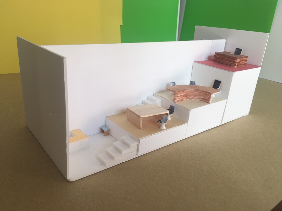 説明は以上です。以下振り返り感想です。視点の切り口は面白いですね~。与えられた空間をなるべく活かそうとしているのも感じられます。ただそれならプロダクトの選定はもう少し根拠をきちんと考えるべきだったかもしれません。あと僕ならもうちょっとちゃんと模型を作りこめるはずです(壁の高さが違うところとか)。来場者や展示会の場所の設定とかもありません。これは確か1か月の課題だったから時間はシビアだった気がしますが...。